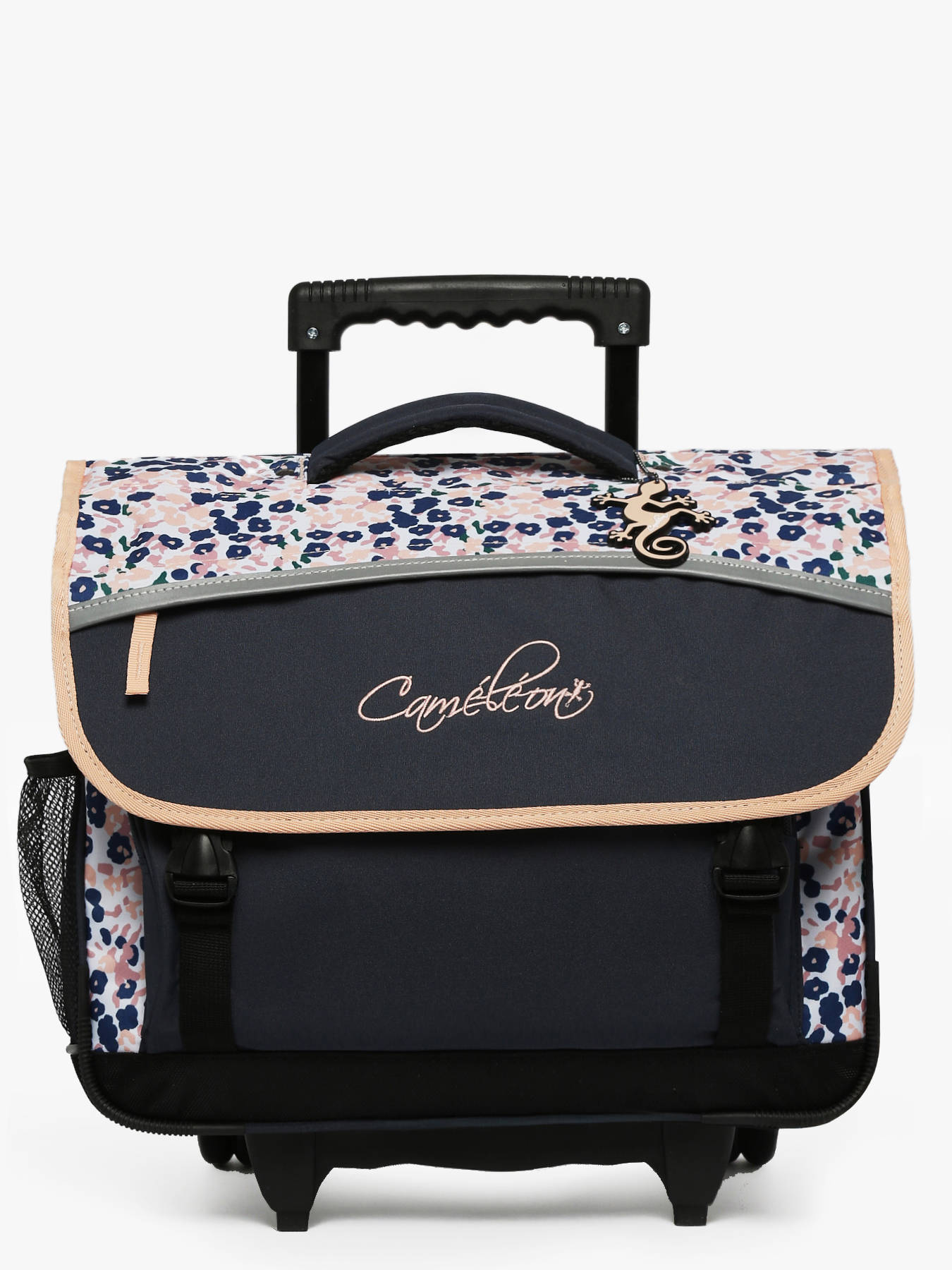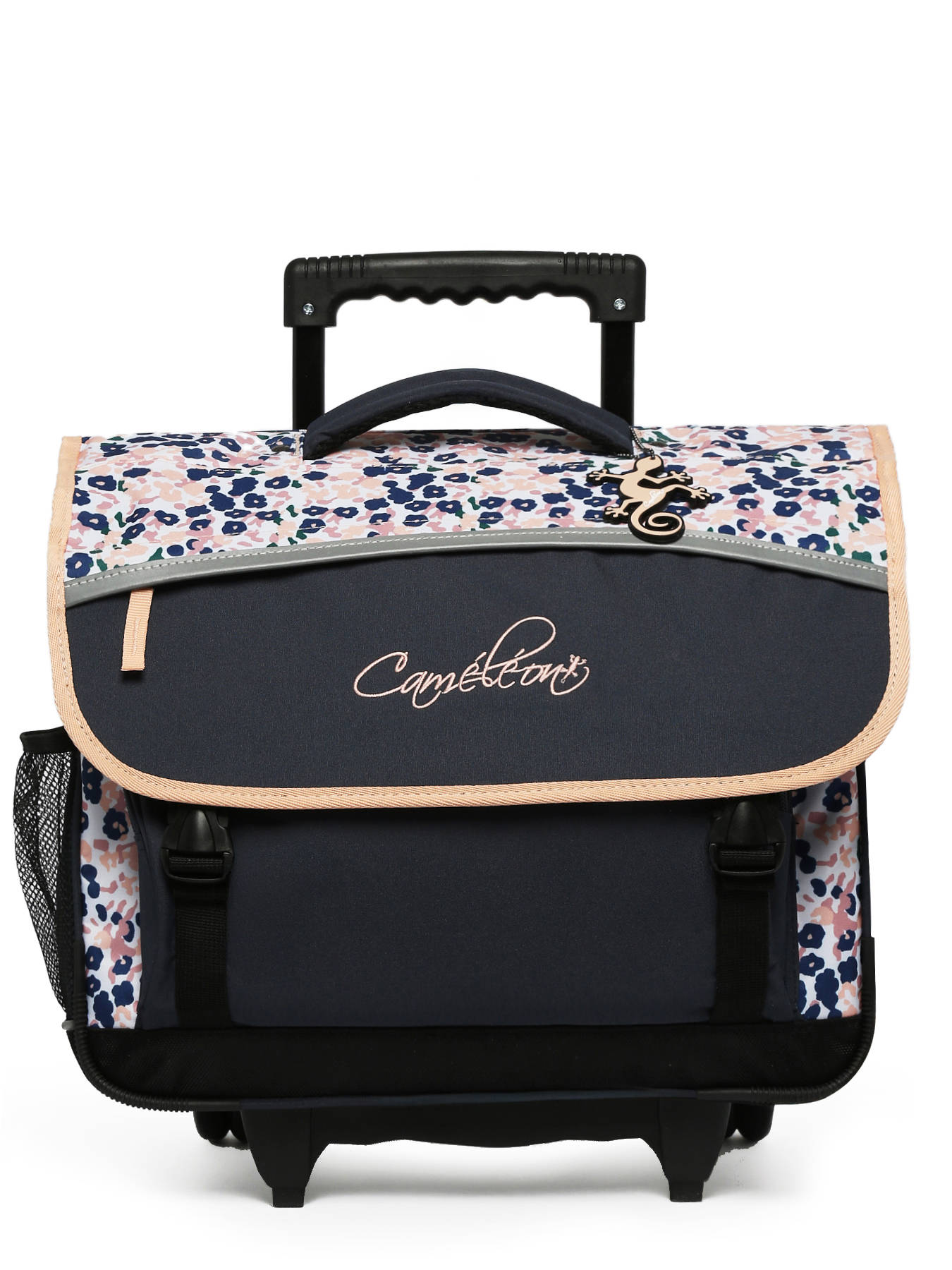41 cm - 22 liter - 2.6 kg ~ Deze boekentas op wieltjes komt uit de Actual collectie van het merk Caméléon. Ideaal vanaf het vierde leerjaar! Deze ruime boekentas bestaat uit een ruim hoofdcompartiment met drie gescheiden opbergvakken, die mappen en schoolboeken van A4 formaat of groter kunnen bevatten. Daarnaast beschikt dit model ook over een ruim voorvak met rits, en een plat opbergvak in de overslagflap vooraan. Dankzij het dubbele kliksysteem zal uw kind de boekentas makkelijk kunnen openen en sluiten. Voor optimaal comfort zijn de rugzijde en schouderbanden extra verstevigd. Ook is deze boekentas voorzien van reflectoren, zodat uw kind zich veilig in het verkeer kan begeven. Wanneer uw kind deze boekentas niet op de rug draagt, kunt u de schouderbanden loskoppelen en opbergen in de rug van de boekentas. De wieltjes kunnen ook worden afgedekt met een uitneembare beschermflap.
