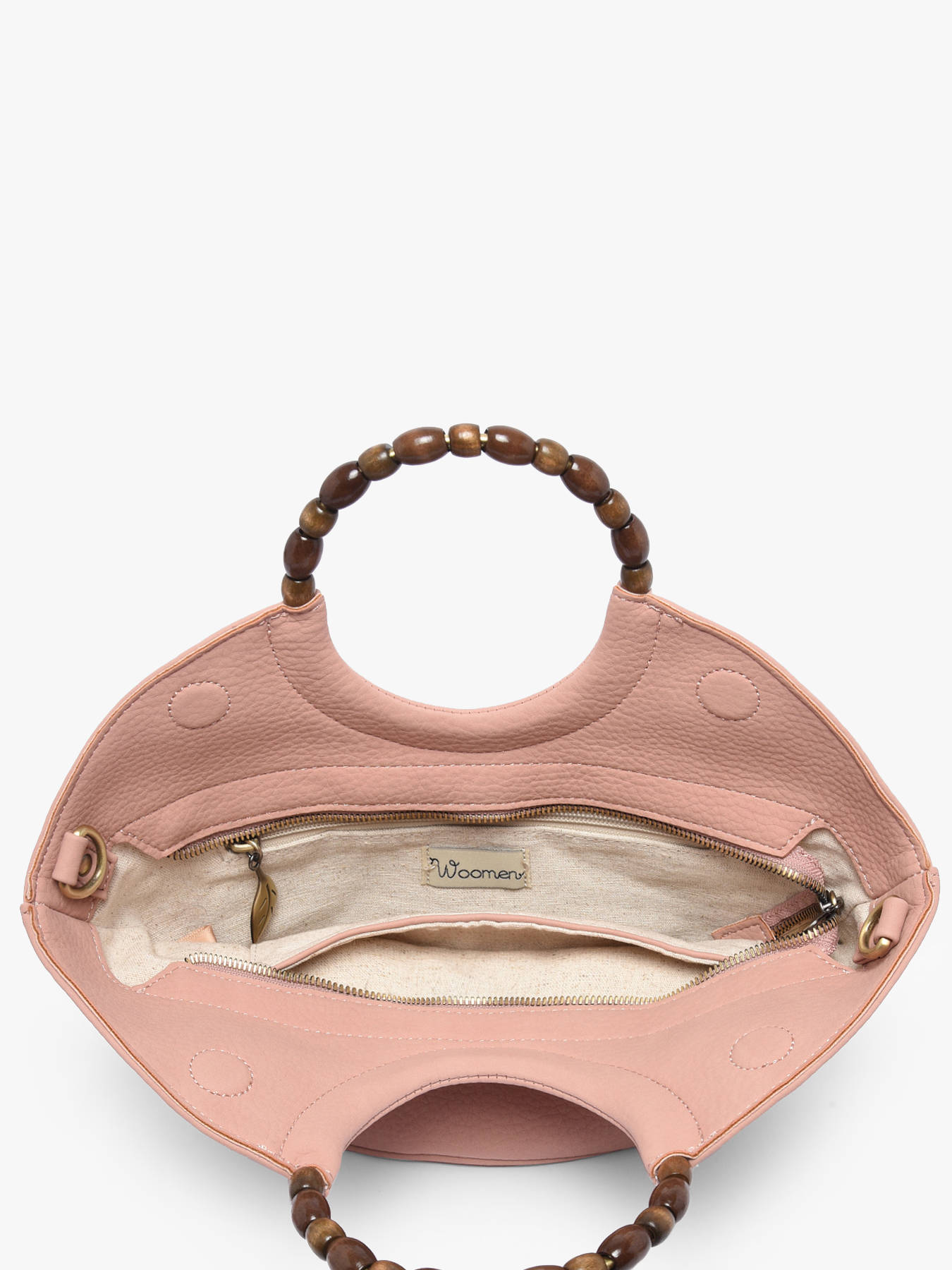 De cross body tas WOOMEN klein formaat uit de lijn Neflier Pearl combineert elegantie, praktisch gebruik en duurzame betrokkenheid. Het hoofdmateriaal van polyurethaan, bestaande uit 58% gerecyclede materialen, in combinatie met een voering van katoen en linnen, biedt lichtheid en stevigheid. Het handvat bedekt met houten parels geeft het model originaliteit en raffinement. Deze tas beschikt over een ritssluiting, een ritsvak aan de achterkant, een afneembare polyurethaan schouderriem voor flexibel dragen, en binnenin een ritsvak en een steekvak om je essentials eenvoudig te organiseren. Het gouden resinelogo maakt het ontwerp compleet en geeft je outfits een verfijnde vleugje.