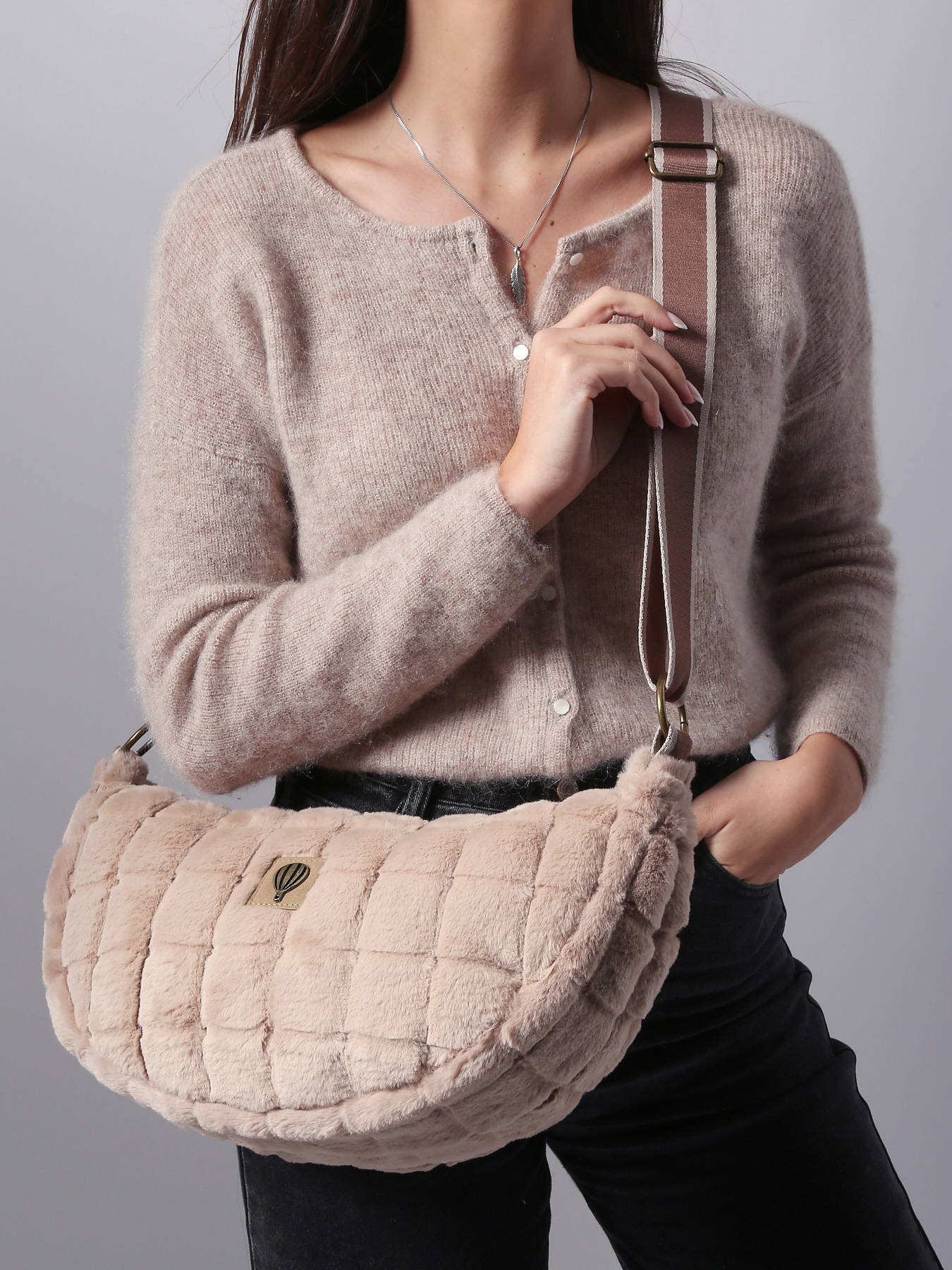 De cross body tas Le Voyage en Panier Quadri Doudou valt op door de perfecte balans tussen zachtheid, functionaliteit en eigentijdse stijl. Gemaakt van polyester met een fluweelzachte touch, toont hij een moderne en functionele vormgeving, ontworpen voor comfortabel dragen over de schouder. De ritssluiting beveiligt je persoonlijke spullen, terwijl een ritsvak aan de achterkant snelle toegang biedt tot je essentials. De binnenzijde, gevoerd met textiel, beschikt over een ruim hoofdcompartiment, aangevuld met twee insteekvakken en een ritsvak, voor een optimale organisatie van je spullen. Licht, veelzijdig en verfijnd combineert de Quadri Doudou hedendaagse esthetiek met praktische bruikbaarheid en belichaamt perfect de geest van Le Voyage en Panier: een chique tas die het dagelijks leven stijlvol vergemakkelijkt.