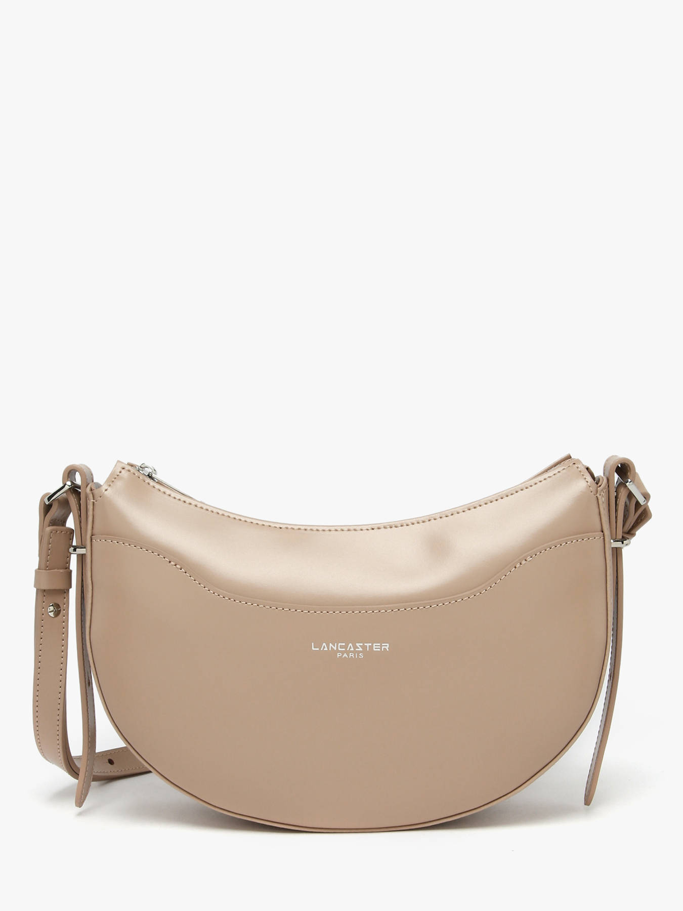 Wil je gaan voor een chique en elegante look. Ga dan voor deze prachtige schoudertas uit de Suave-lijn van Lancaster. Het bekende Franse merk biedt je dit nieuwe seizoen een dameshandtas van glad glanzend rundleer. Je zult dol zijn op de halve maanvorm waarin u al je dagelijkse benodigdheden in passen zoals portemonnee, telefoon en sleutels. Binnenin deze Lancaster schoudertas vind je twee enkele steekvakken en een vak met ritssluiting om kleine spullen in op te bergen. Draag deze schoudertas van Lancaster Suave naar keuze cross-body of onder de arm dankzij de verstelbare schouderriem en combineer hem met een trendy outfit.